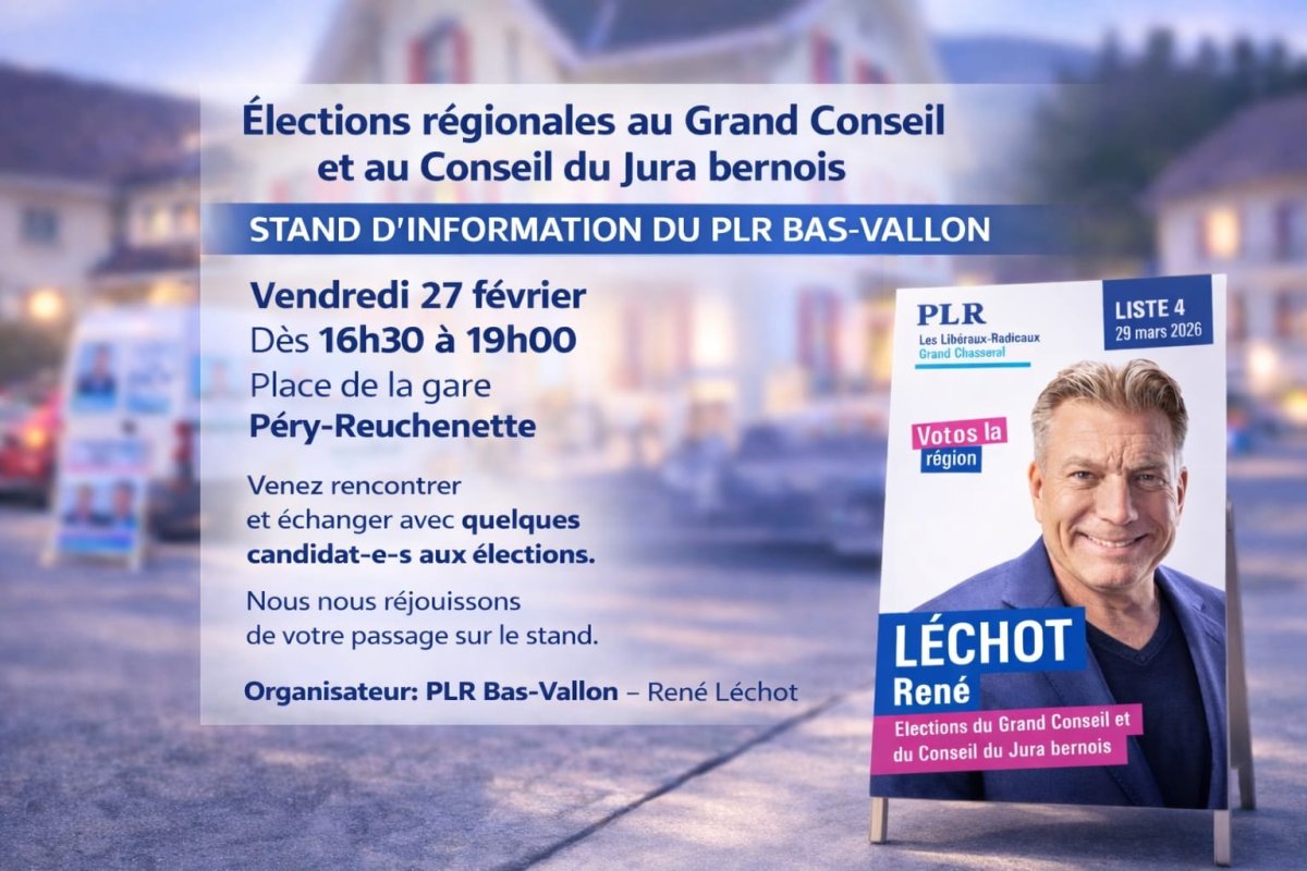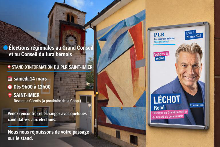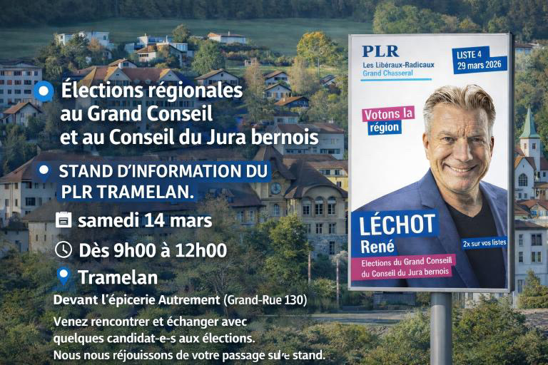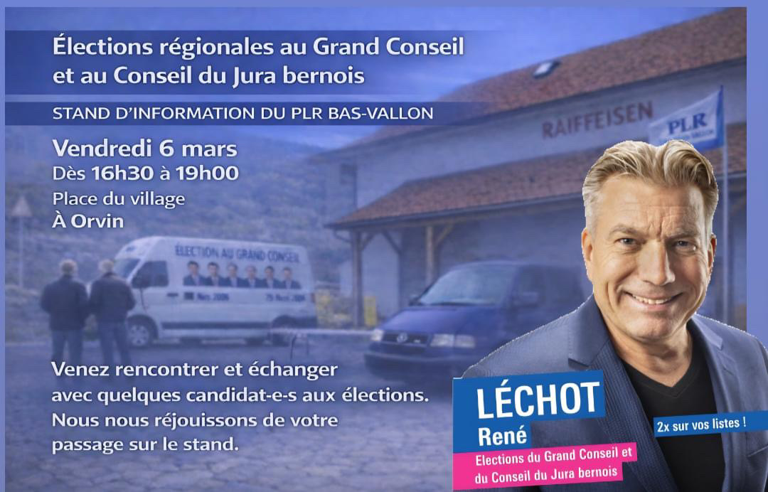 Dans le cadre des élections régionales au Grand Conseil et au Conseil du Jura bernois, vous pourrez me retrouver à divers événements pour échanger.